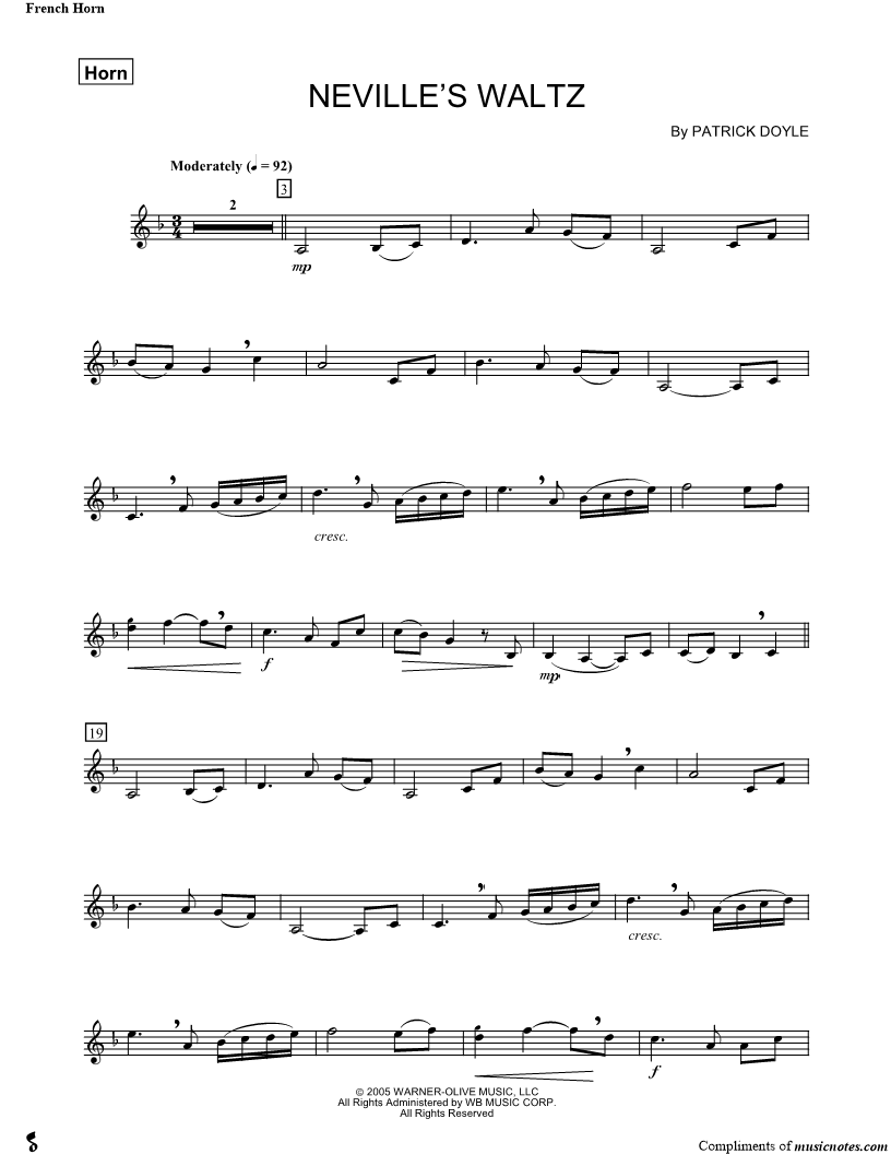 French Horn, range: A3-G5 | |