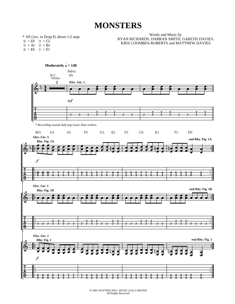 Voice, range: F4-Bb5 Guitar 1, range: D4-D6 Guitar 2 Guitar 3 | |