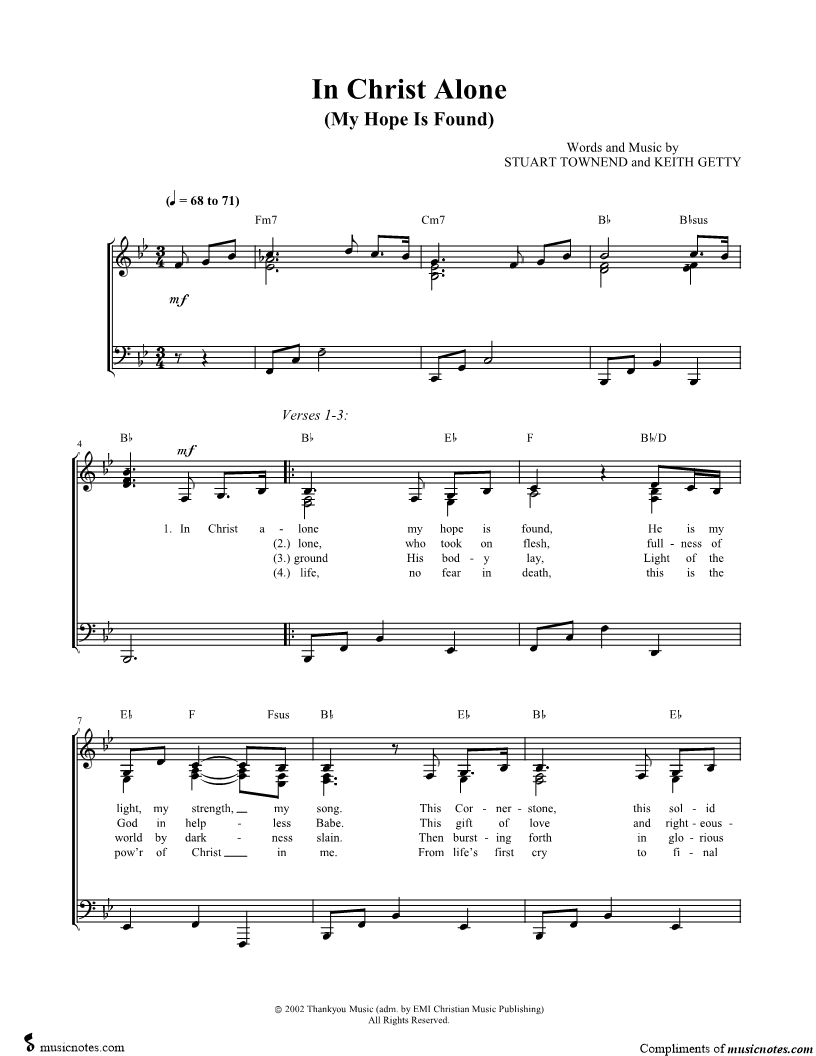In Christ alone my hope is found, He is my light, my strength, my song. |