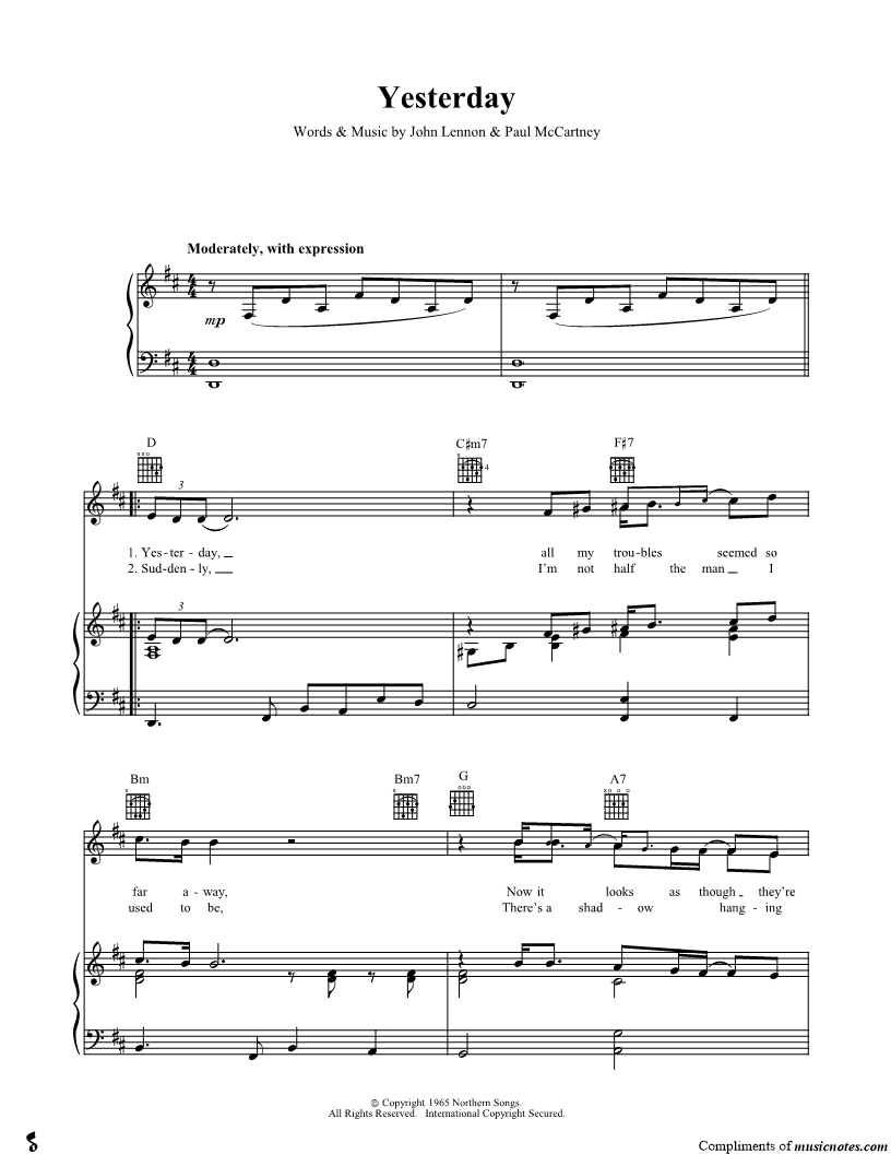 Yesterday, all my troubles seemed so far away, it looks as though they're here to stay, Oh I believe in yesterday. |