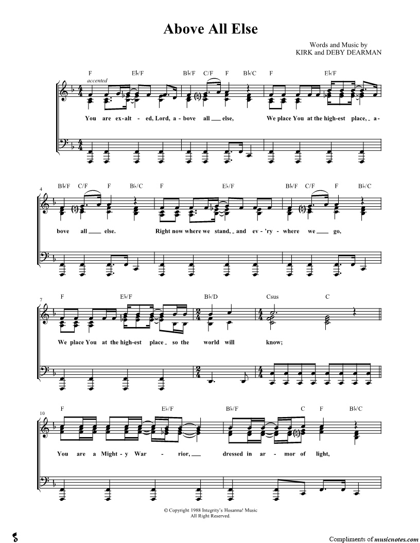 You are exalted, Lord, above all else, we place You at the highest place, above all else. |