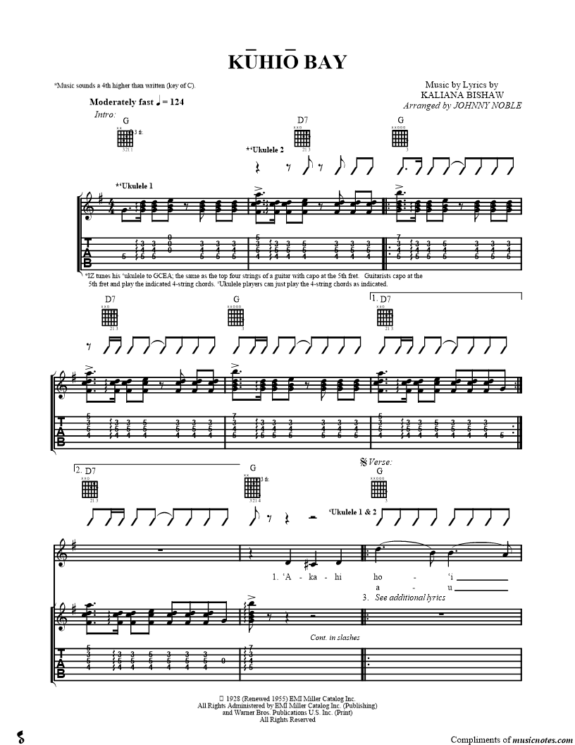 Voice 1, range: E4-E4 Ukulele 1, range: D4-D6 or Guitar Ukulele 2 or Guitar | |