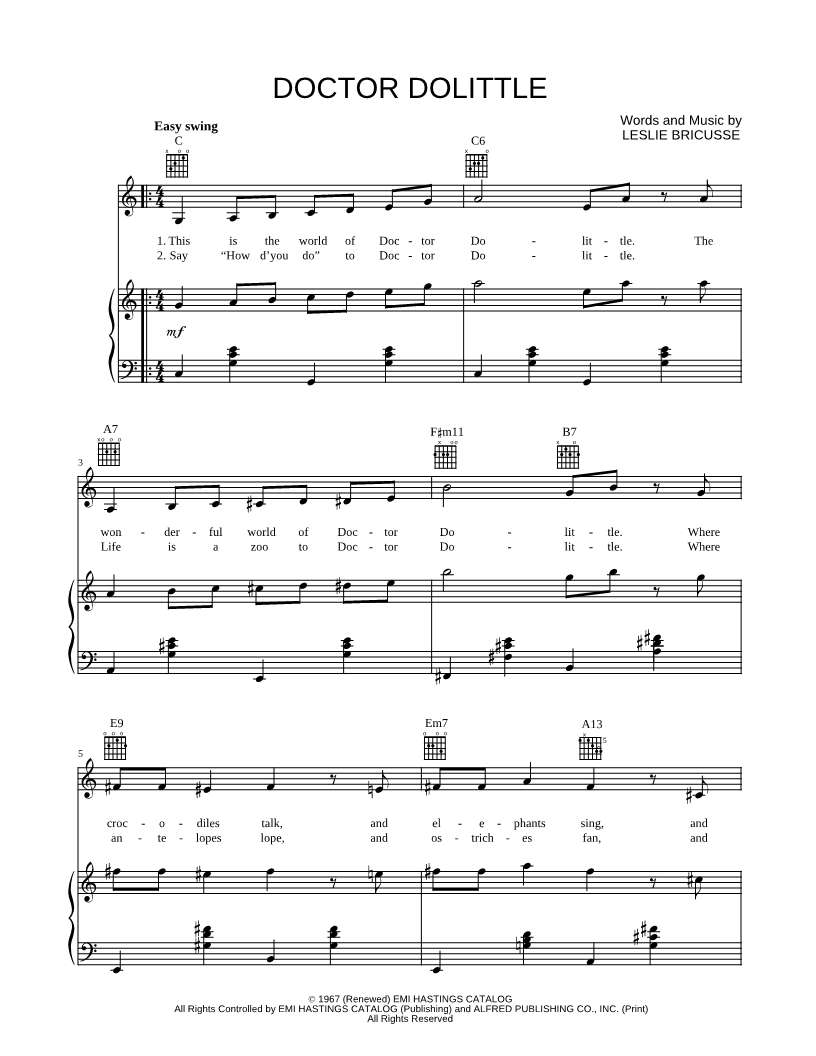 This is the world of Doctor Dolittle. The wonderful world of Doctor Dolittle. Where crocodiles talkand elephants sing and animals do most any old thing. |