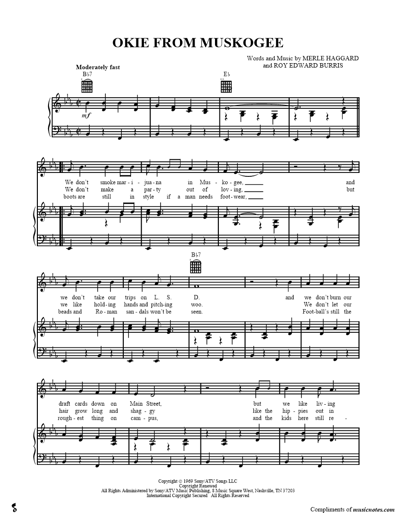We don't smoke marijuana in Muskogee, and we don't take our trips on L.S.D. |
