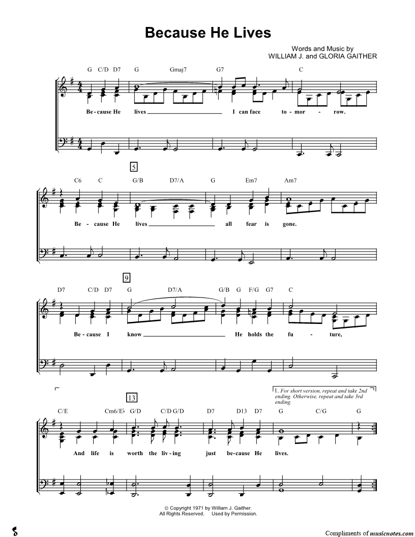 Because He lives I can face tomorrow. Because He lives all fear is gone. |
