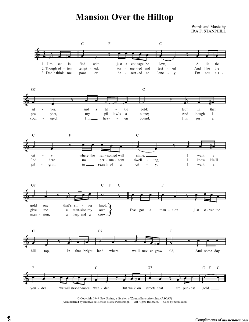 I'm satisfied with just a cottage below, A little silver and a little gold. |