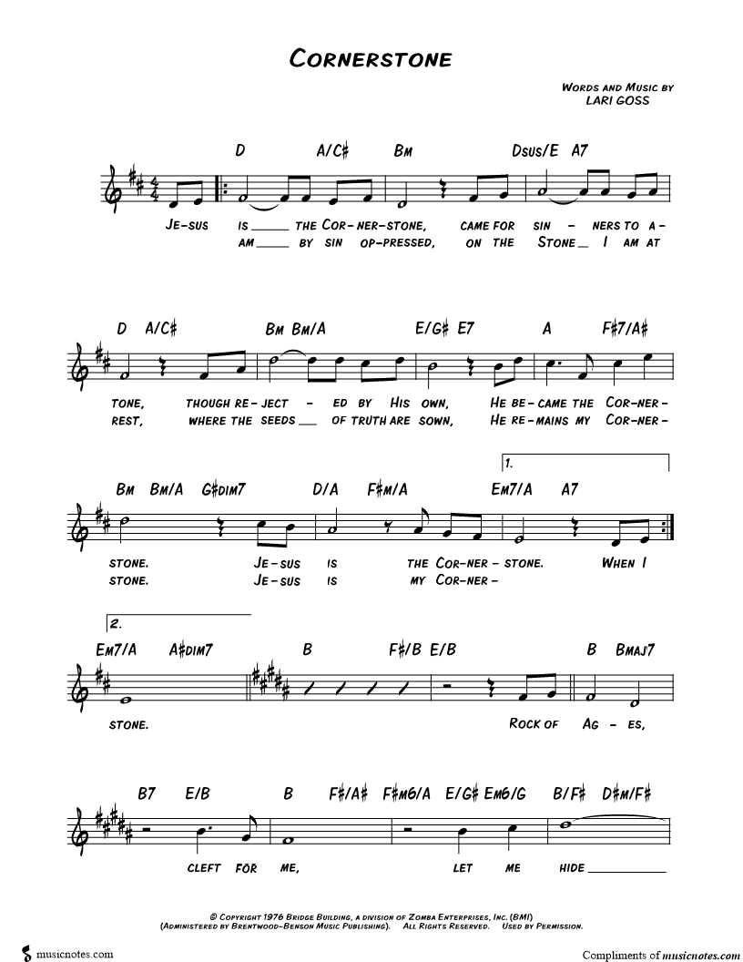 Jesus is the Cornerstone, came for sinners to atone, though rejected by His own, He became the Cornerstone. |