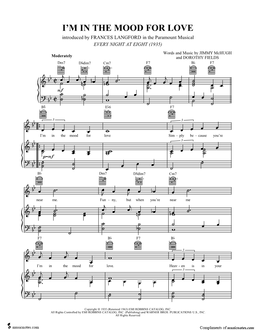 I'm in the mood for love Simply because you're near me. |