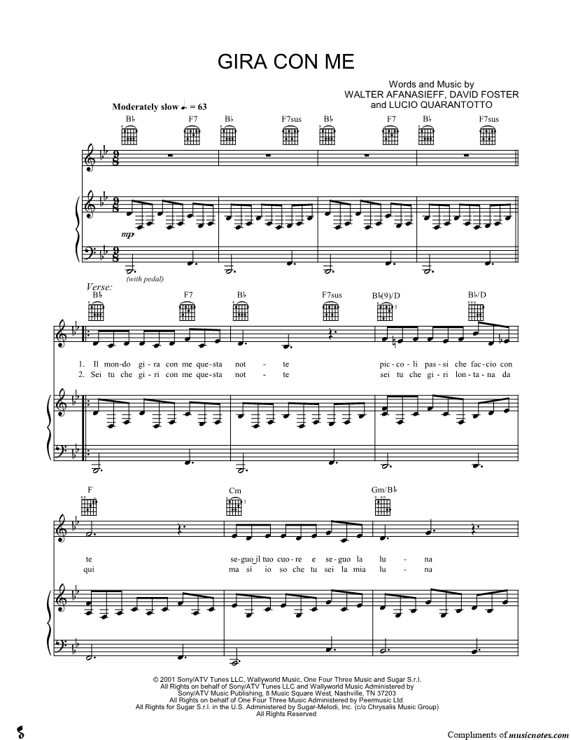 Il mondo gira con me questa notte piccoli passi che faccio con te seguo il tuo cuore e seguo la luna cosí nascosta lontana da me. |