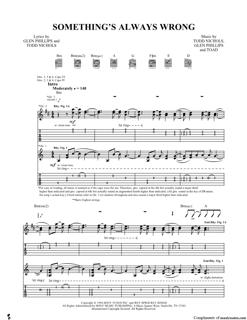 Voice 1, range: D4-D4 Guitar 1, range: E3-A5 Voice 2, range: D4-F#5 Guitar 2, range: F3-G5 Guitar 3, range: E3-A5 Backup Vocals Strum Guitar 4 Guitar 5 Guitar 6 | |