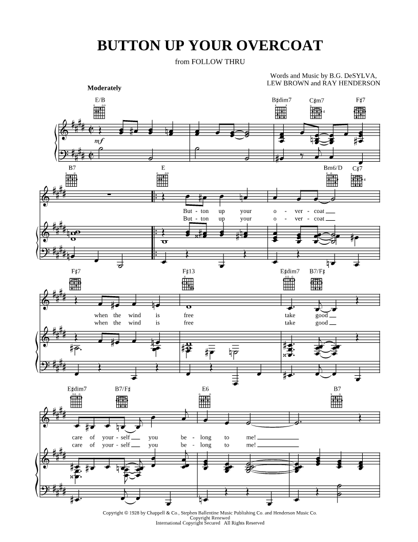 Button up your overcoat when the wind is free take good care of yourself you belong to me! |