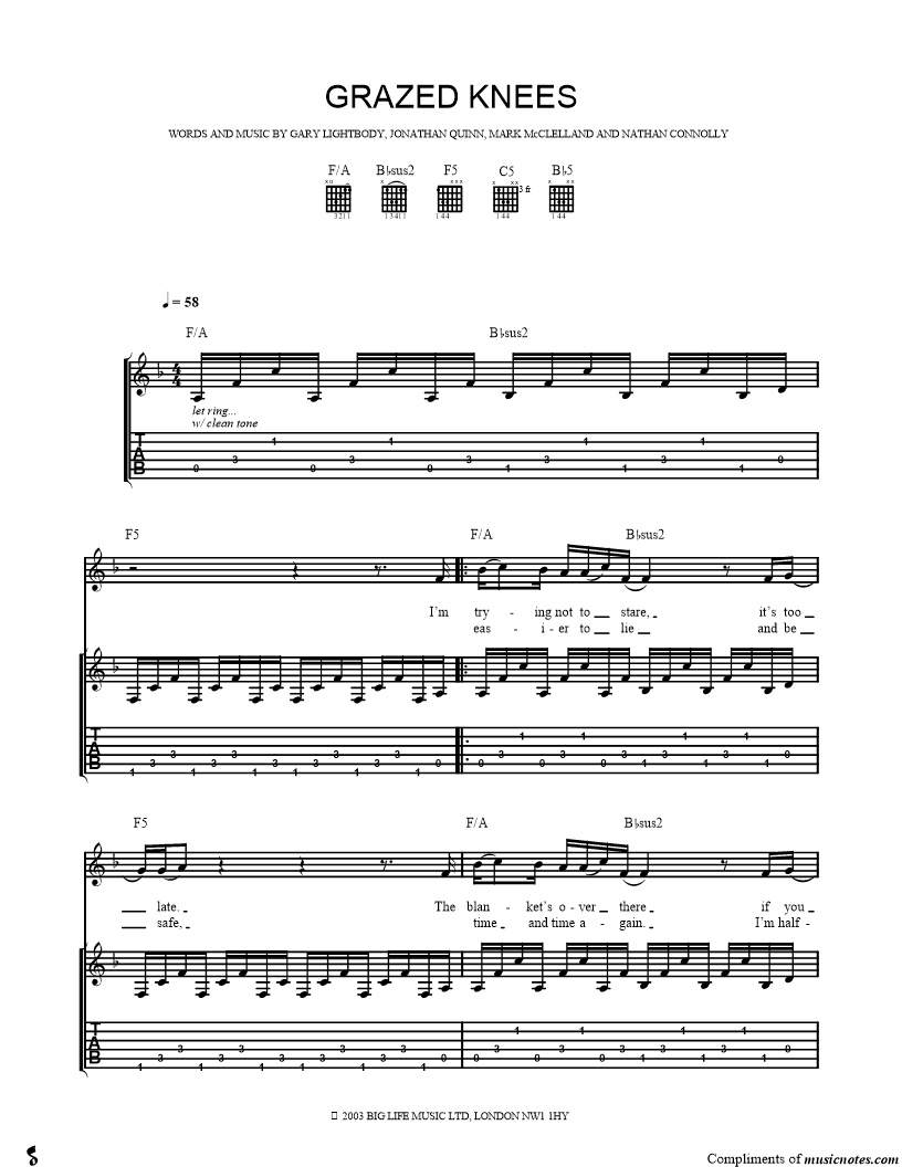 Guitar Tab Guitar/Vocal |