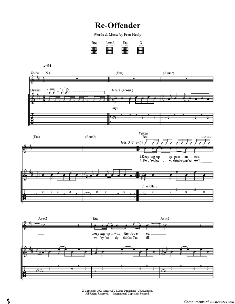 Guitar Tab Guitar/Vocal |