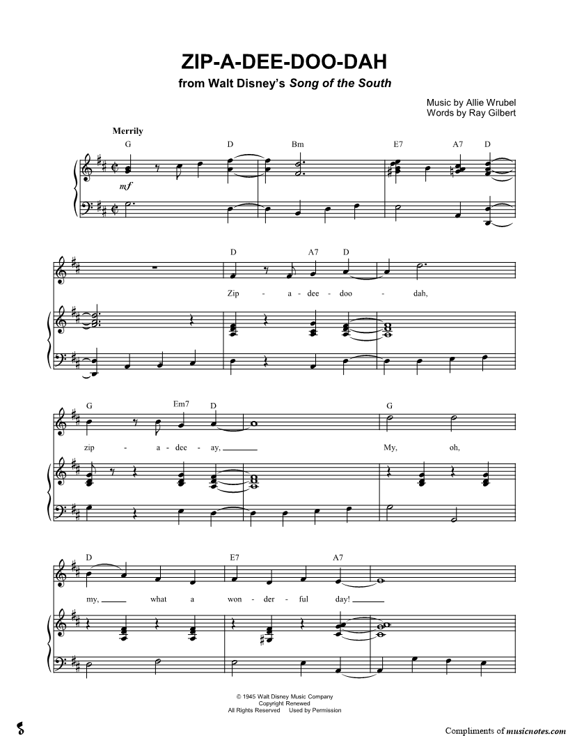 Zip-a-dee-doo-dah, zip-a-dee-ay, my, oh, my, what a wonderful day! |
