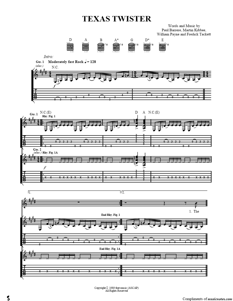 Strum Voice, range: E3-G#5 Guitar 1, range: E3-B6 Guitar 2, range: E3-G#6 Guitar 3, range: E3-F#5 Backup Vocals | |
