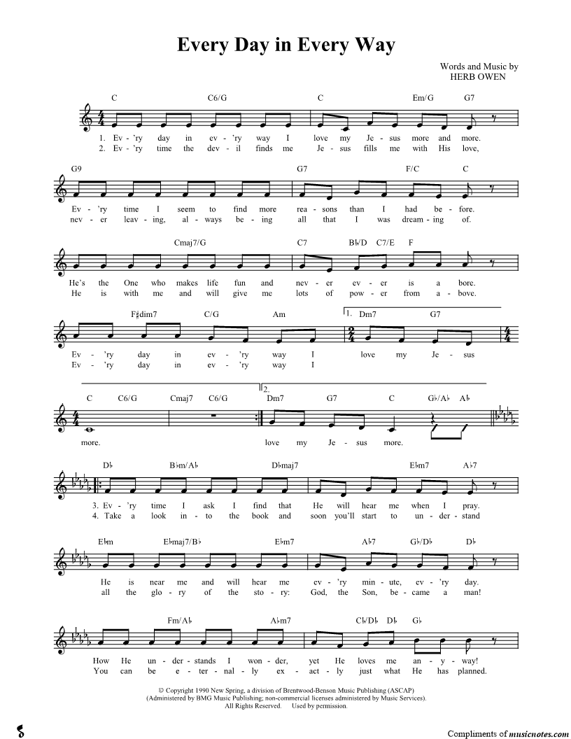 Ev'ry day in ev'ry way I love my Jesus more and more. |
