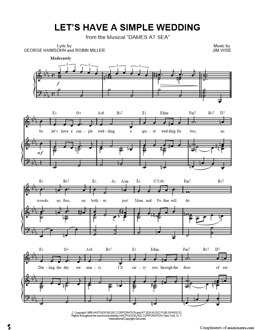 So let's have a simple wedding, a quiet wedding for two, no crowds, no fuss, no bother, just Mom and Father will do. |