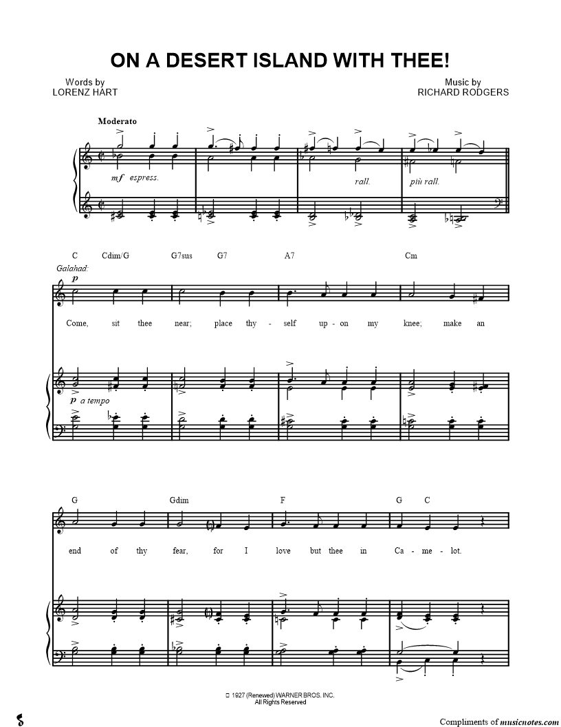 Come, sit thee near; place thyself upon my knee; make an end of thy fear, for I love but thee in Camelot. |