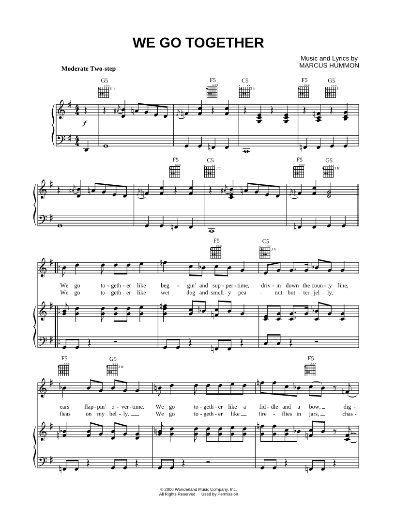 We go together like beggin' and suppertime, drivin' down the county line, ears flappin' overtime. |