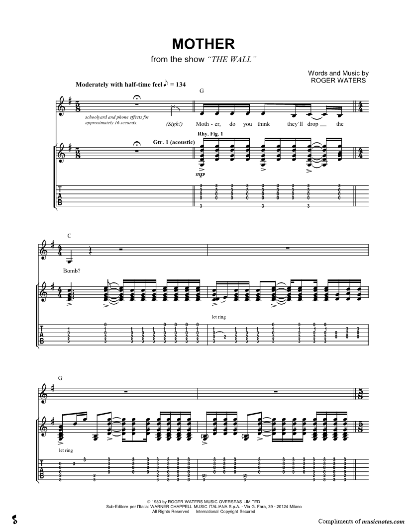 Guitar Tab Guitar/Vocal |