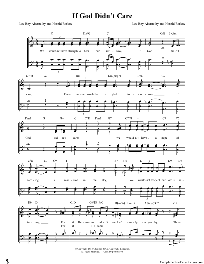 We wouldn't have strength to bear our sorrow, if God didn't care; |