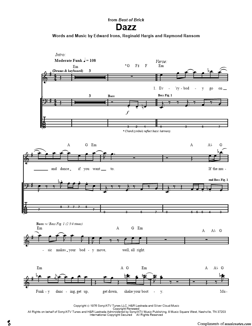 Bass/Vocal/Chords Bass Tab |