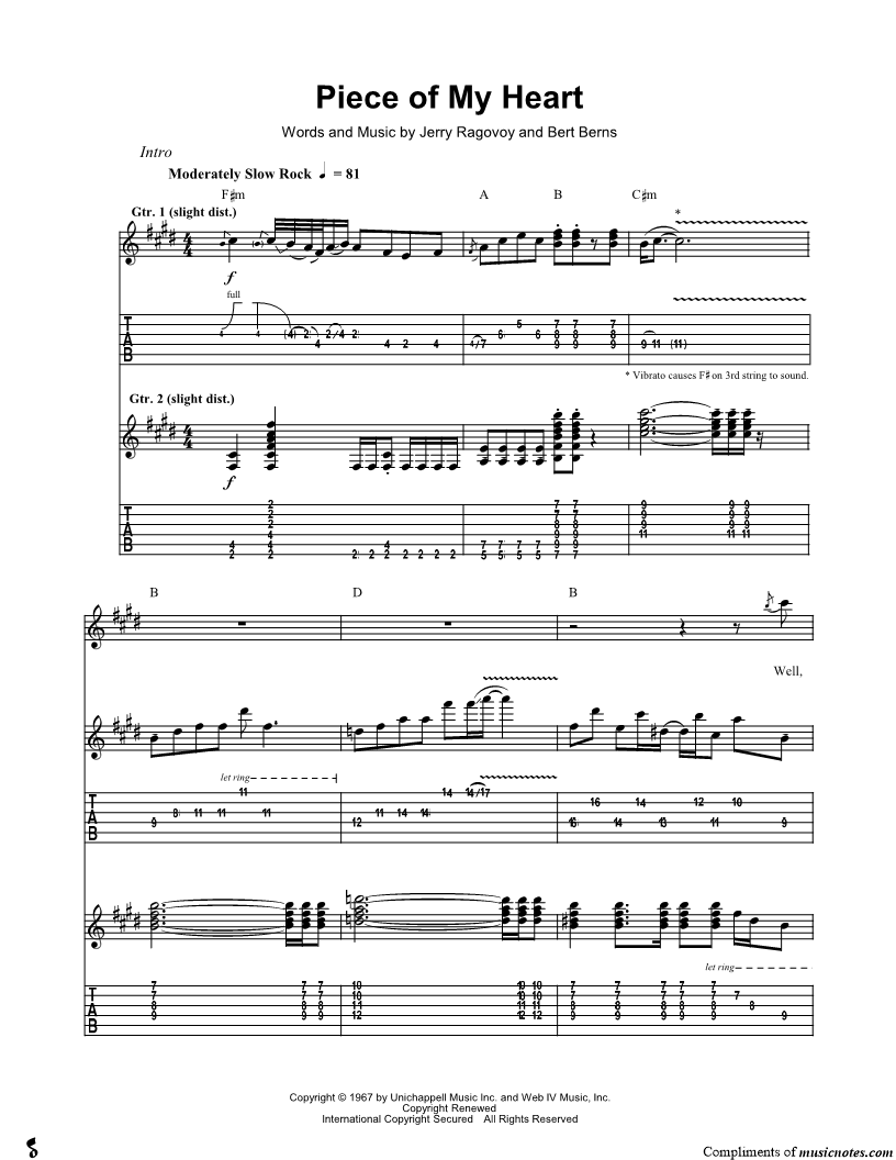 Guitar Tab Guitar/Vocal |