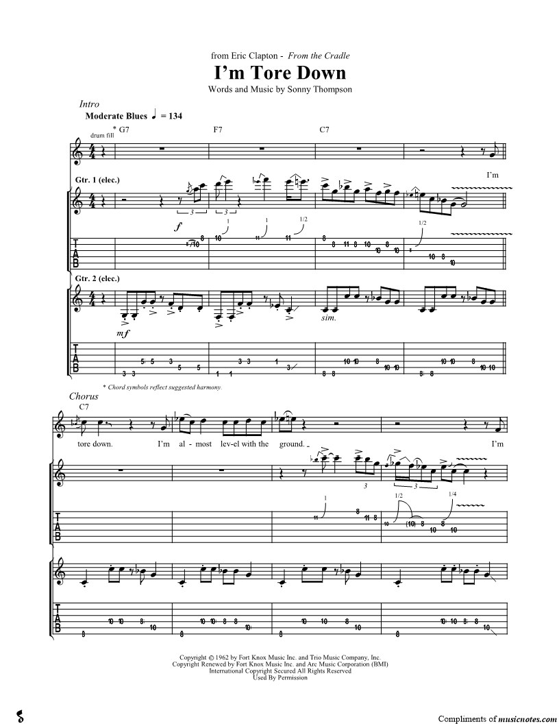 "Has chords, tab for 1st guitar and 2nd guitar"