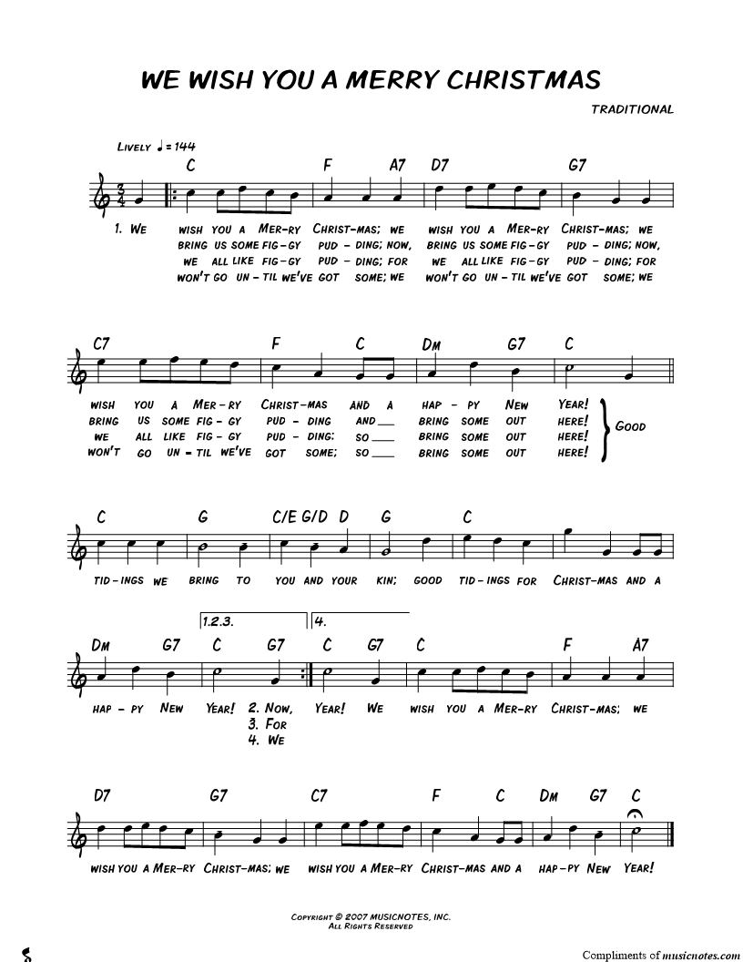 We wish you a Merry Christmas; we wish you a Merry Christmas; we wish you a Merry Christmas and a happy New Year! |
