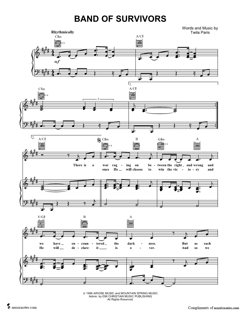 Musicnotes sells a wide variety of digital sheet music products including Singer Pros, Beginner Notes, Choral music, Piano Solos, Lead Sheets, Piano/Vocal/Guitar, Solo and Accompaniment, and fretted instrument tablature.