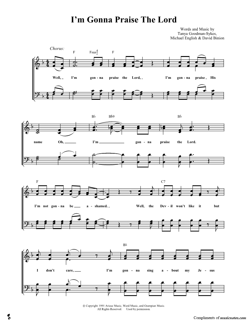 Well, I'm gonna praise the Lord, I'm gonna praise his name |