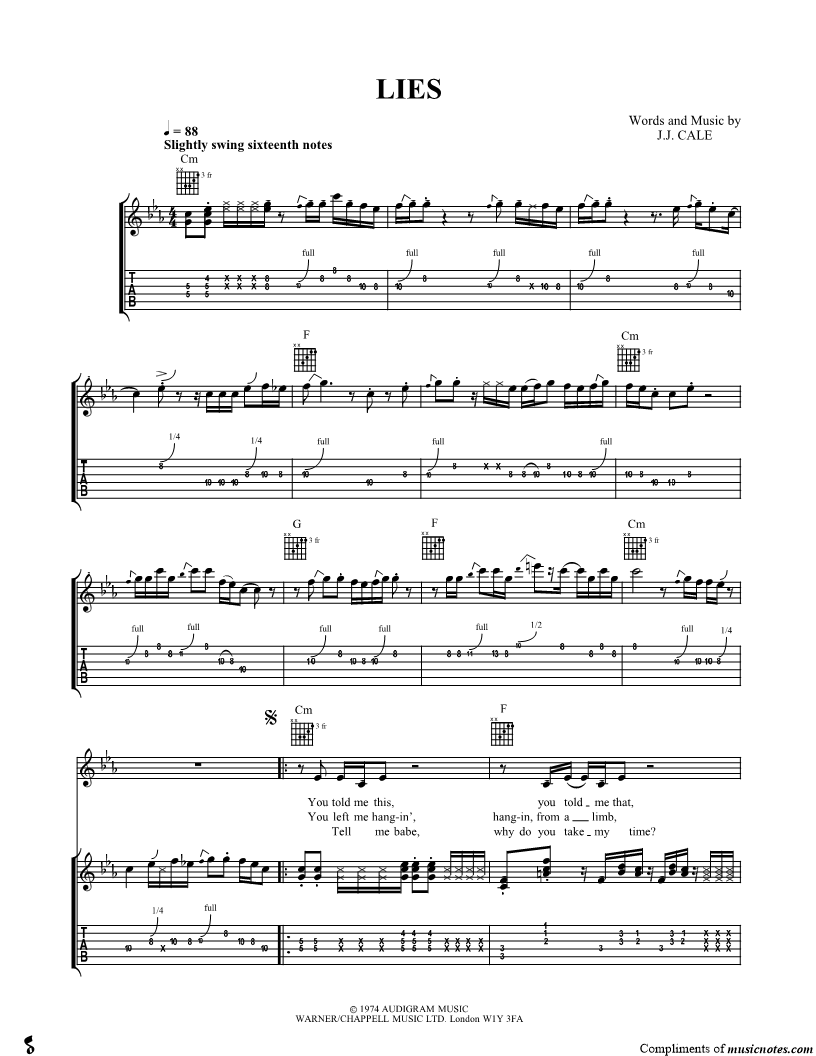 Guitar Tab Guitar/Vocal |
