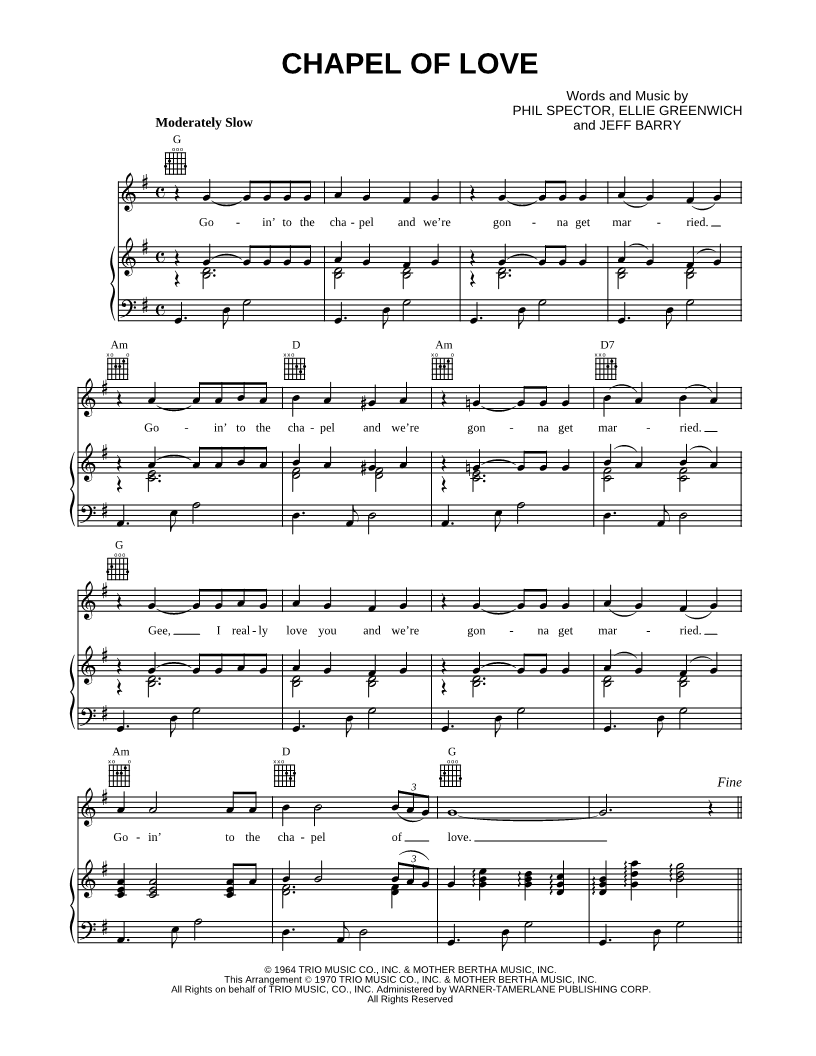 Goin' to the chapel and we're gonna get married. |