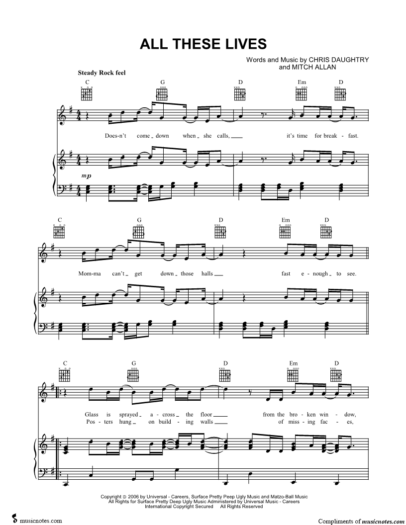 Musicnotes sells a wide variety of digital sheet music products including Singer Pros, Beginner Notes, Choral music, Piano Solos, Lead Sheets, Piano/Vocal/Guitar, Solo and Accompaniment, and fretted instrument tablature.