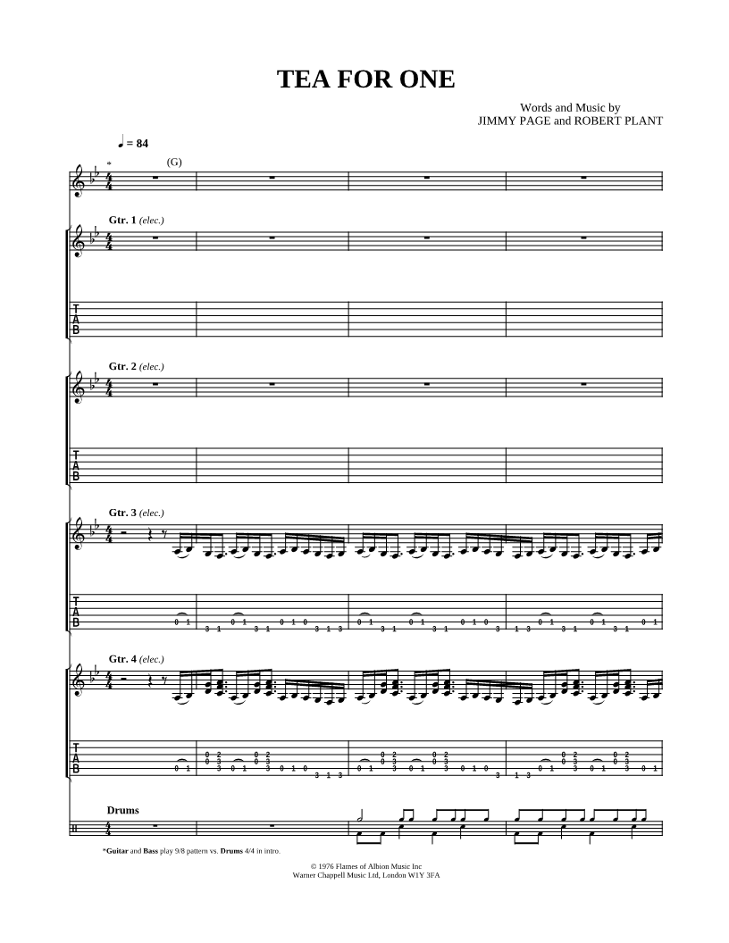 Voice, range: Eb4-Bb5 Guitar 1 Guitar 2 Guitar 3 Guitar 4 Drums | |