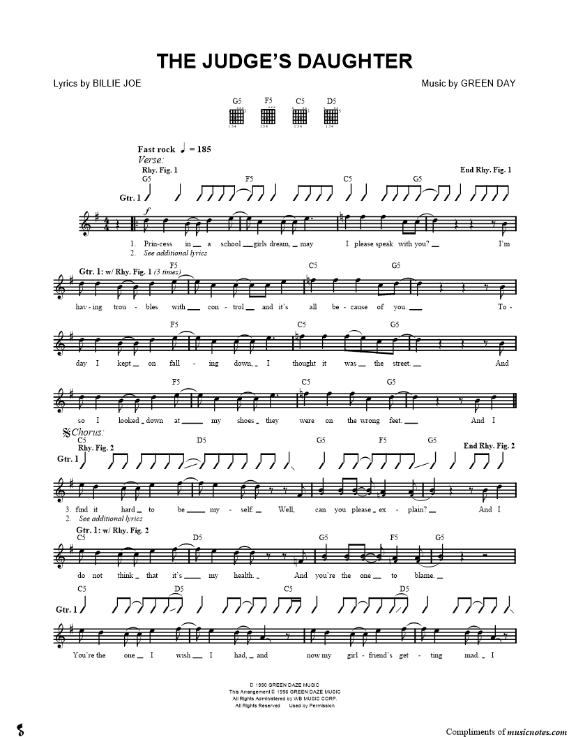 Guitar Tab Guitar/Vocal Lyrics/Melody/Chords |