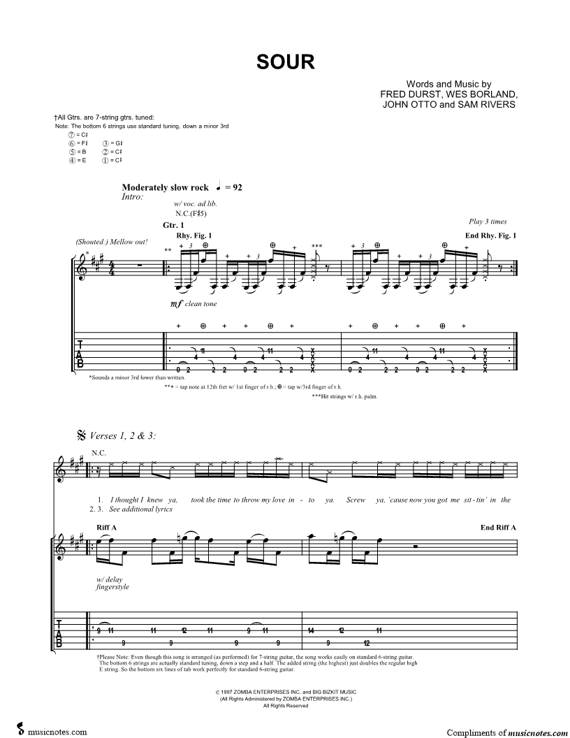 Guitar Tab Guitar/Vocal |