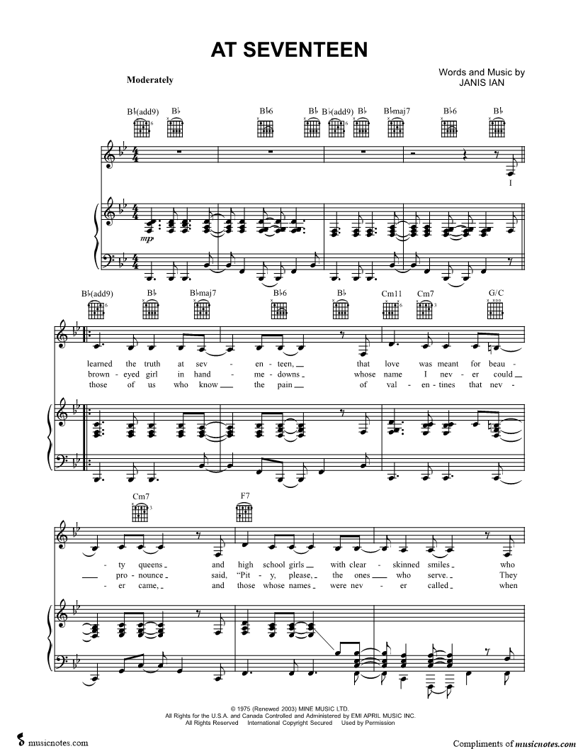 At Seventeen Essential Songs - The 1970s The Big Book of Folk Pop Rock |