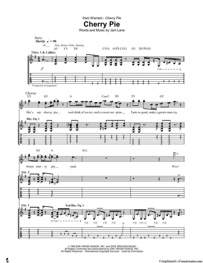 Guitar Tab Guitar/Vocal |