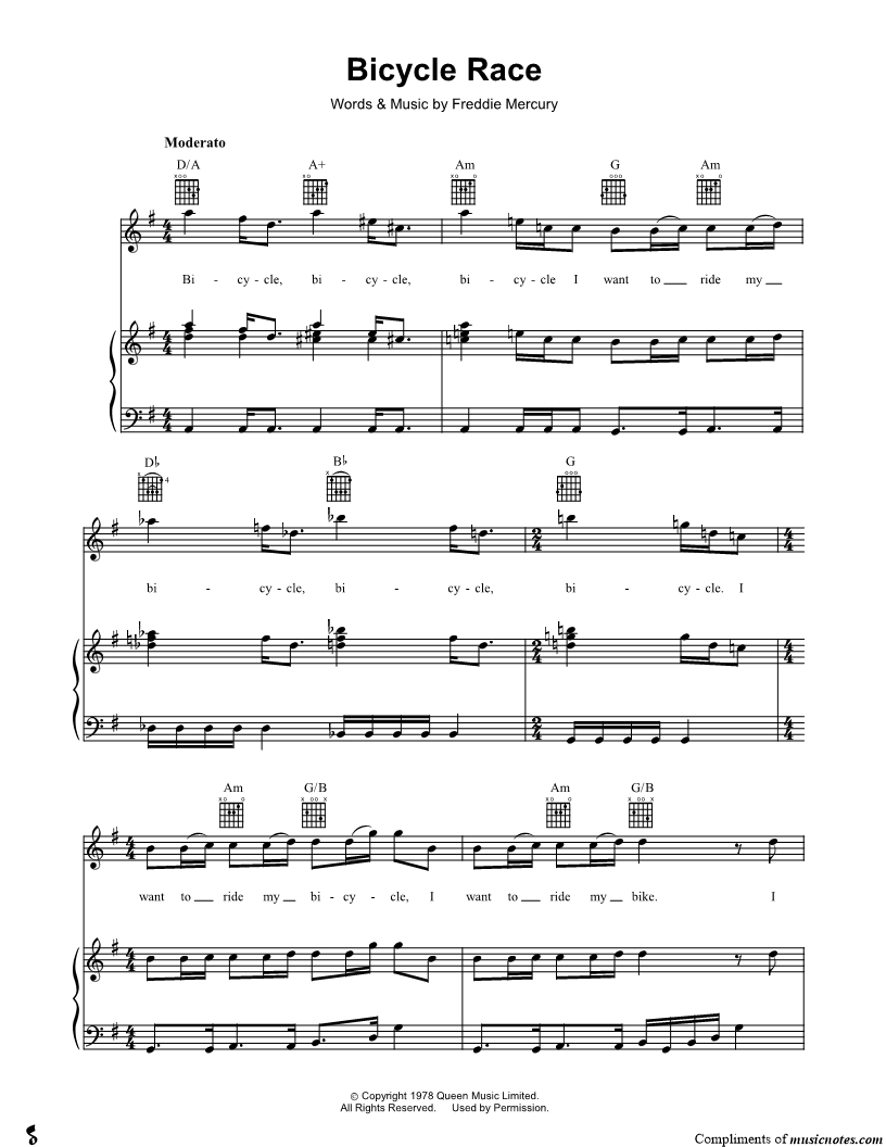 Bicycle, bicycle, bicycle I want to ride my bicycle, bicycle, bicycle. |