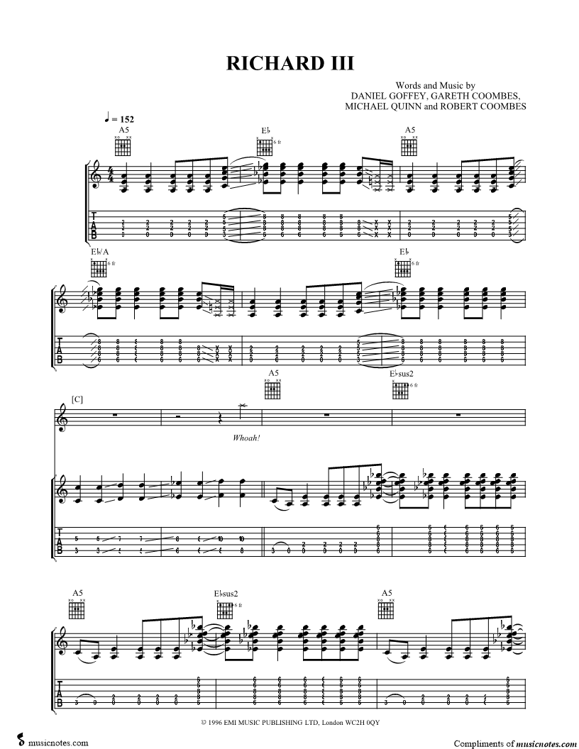 Voice, range: G4-A5 Guitar, range: G3-Bb5 | |
