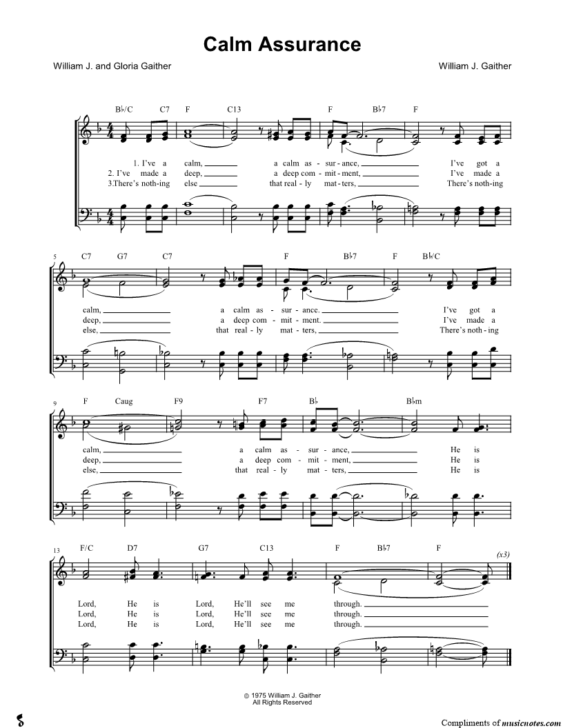I've a calm, a calm assurance, |