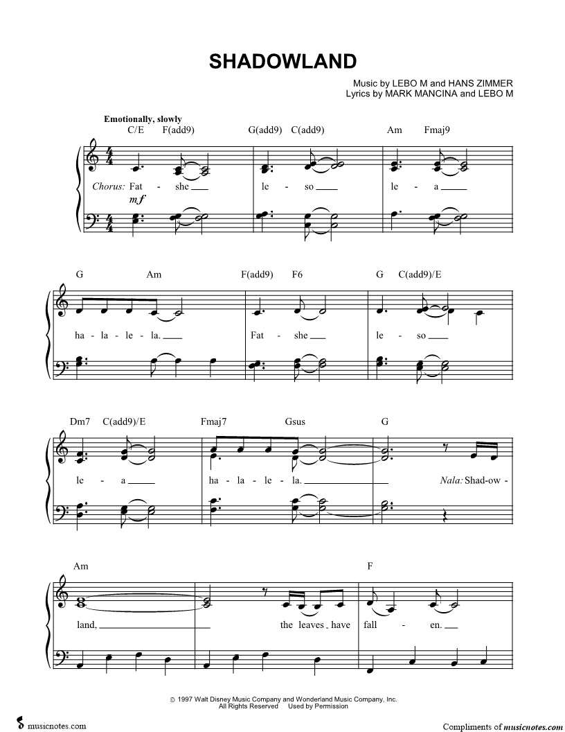 Musicnotes sells a wide variety of digital sheet music products including Singer Pros, Beginner Notes, Choral music, Piano Solos, Lead Sheets, Piano/Vocal/Guitar, Solo and Accompaniment, and fretted instrument tablature.