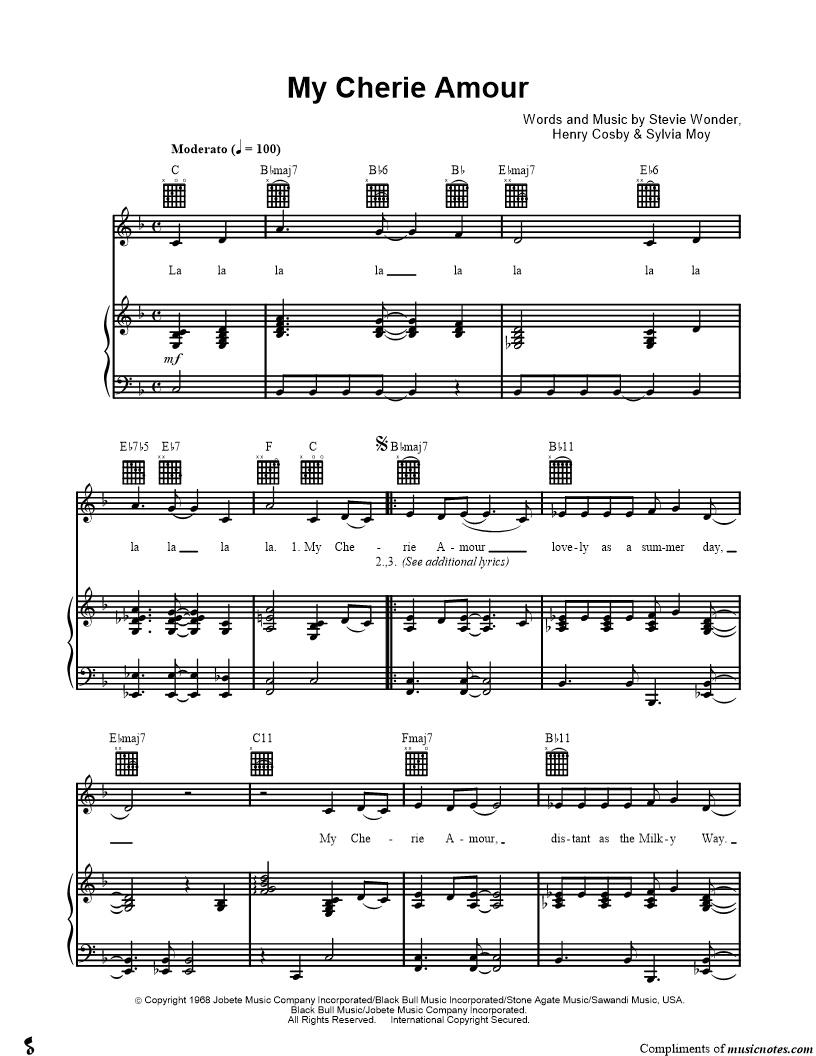 La la la la la la, la la la la la la. My Cherie Amour, lovely as a summer day, |