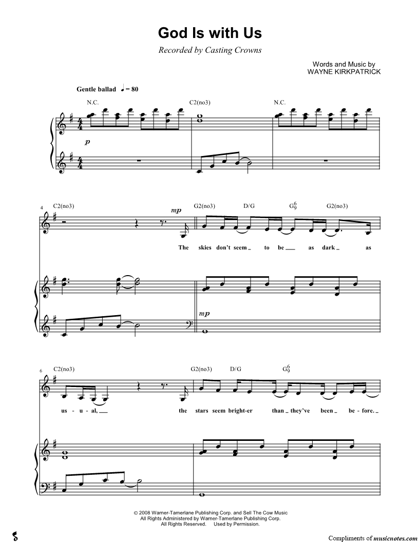 "This is a very nice arrangement and similar to the recorded version by Casing Crowns."