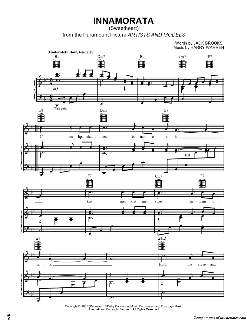 If our lips should meet, innamorata, kiss me, kiss me, sweet, innamorata. |