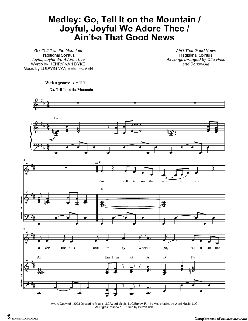 Go, Tell It on the Mountain / Joyful, Joyful We Adore Thee / Ain't-a That Good News |