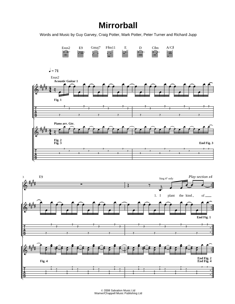 Voice, range: B3-G#5 Guitar 1 Guitar 2 Guitar 3 | |