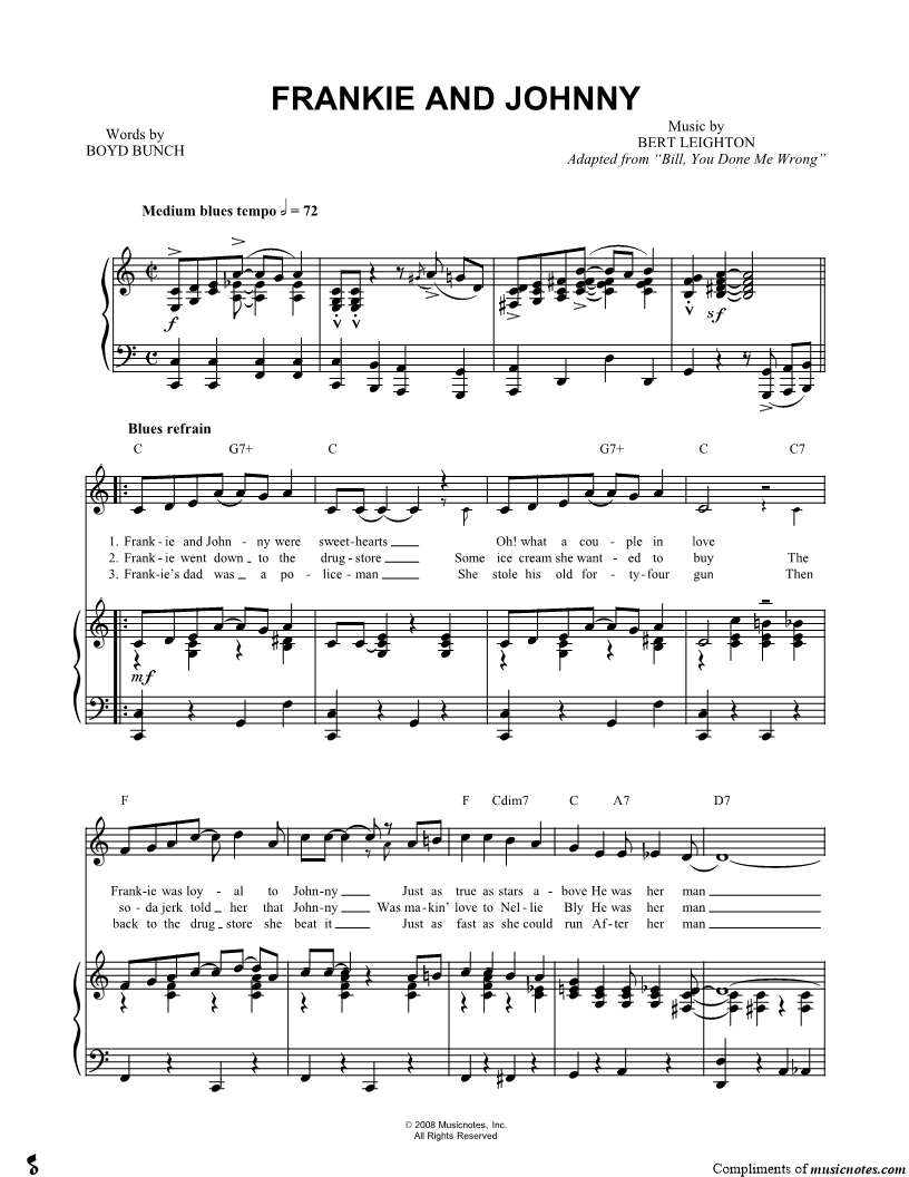 Frankie and Johnny were sweethearts |