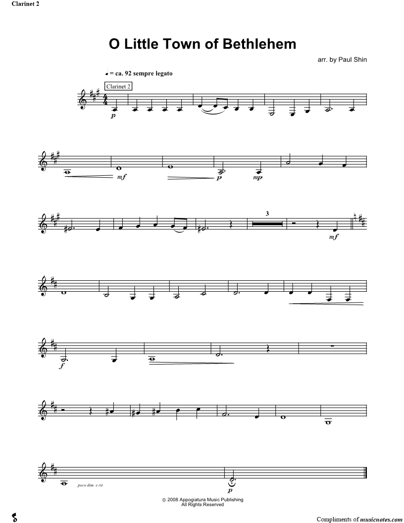 O Little Town of Bethlehem - Clarinet 2 |